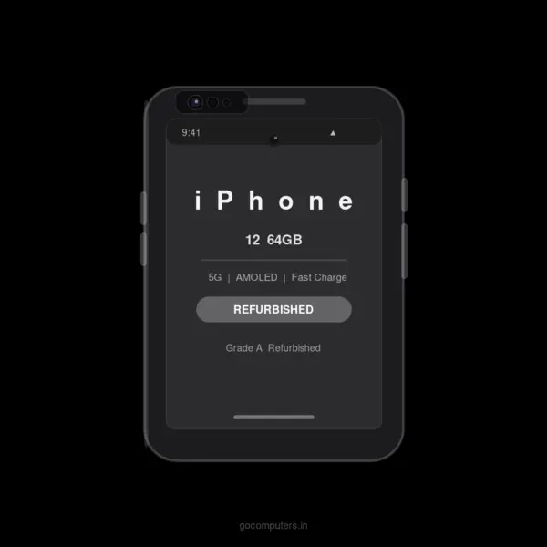 Certified Refurbished Apple iPhone 12 64GB ā Grade A. Excellent condition with minor signs of use. Battery health 85%+. Comes with 6 months warranty and 7-day return policy. Processor: Apple A14 Bionic, RAM: 4GB, Storage: 64GB, Display: 6.1" Super Retina XDR OLED, Camera: 12MP Dual, Battery Health: 87%, OS: iOS 17.